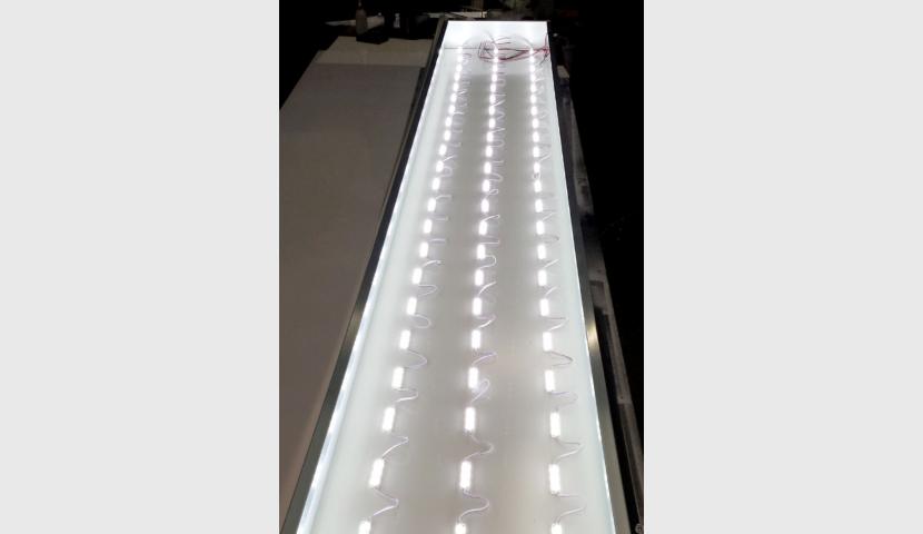 L'illuminazione interna è realizzata con con moduli led. Monofacciali o bifacciali, sono installabili a muro o a bandiera.